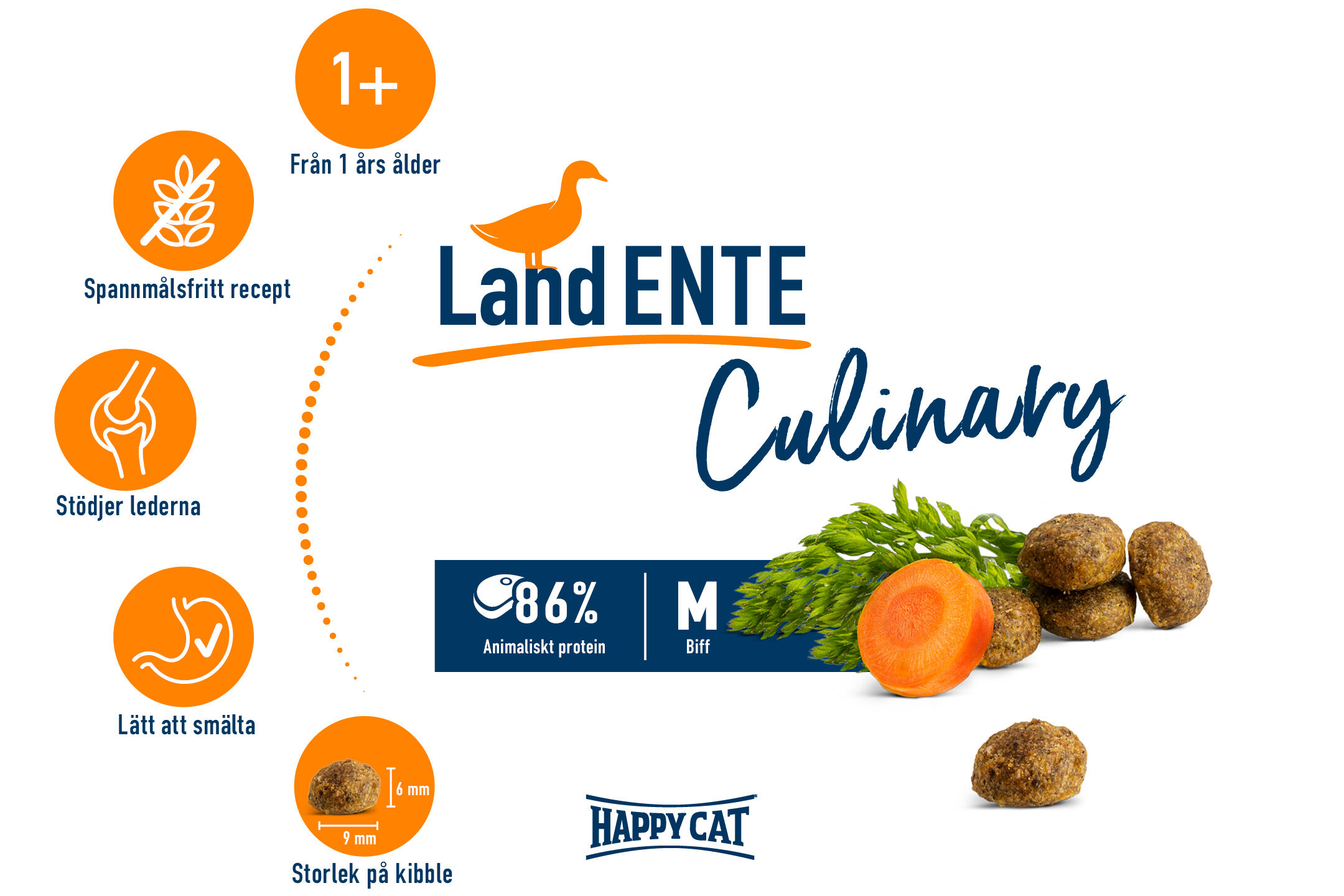 Den särskilt smakfulla kompositionen med mör anka och saftig morot ger en balanserad kost för din kattvän. Receptet med dess spannmålsfria ingredienser är både lätta att smälta och innehåller en hög andel animaliskt protein. Det är särskilt viktigt för muskulaturen hos aktiva katter. Sammansättningen bidrar till att produkten tolereras väl och är också lämpligt för känsliga små finsmakare.